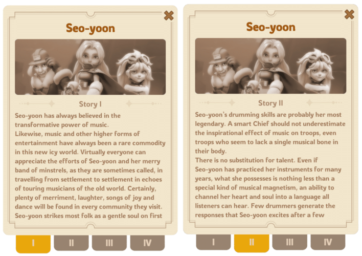 Her privileged upbringing was shattered during her late teenage years when bandits raided her settlement. Most defenders were slain, including her father, and survivors fled into the icy wilderness. Despite the chaos and despair, Seo-yoon refused to give in. She took up her instruments and played a stirring martial melody through the night, igniting a spark of hope among the remaining survivors.