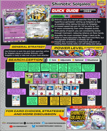 Overall, this deck’s strength lies in its fast, consistent evolution chain, early damage potential, and disruption tactics—making it a top-tier choice for players seeking a highly reactive and aggressive Stage 2 build.The core strategy revolves around deploying a powerful attacker capable of dealing 120 damage each turn, with the goal of assembling two such units for maximum impact. Prioritizing the rapid evolution of key Pokémon is essential, which is facilitated by focusing on specific search cards.