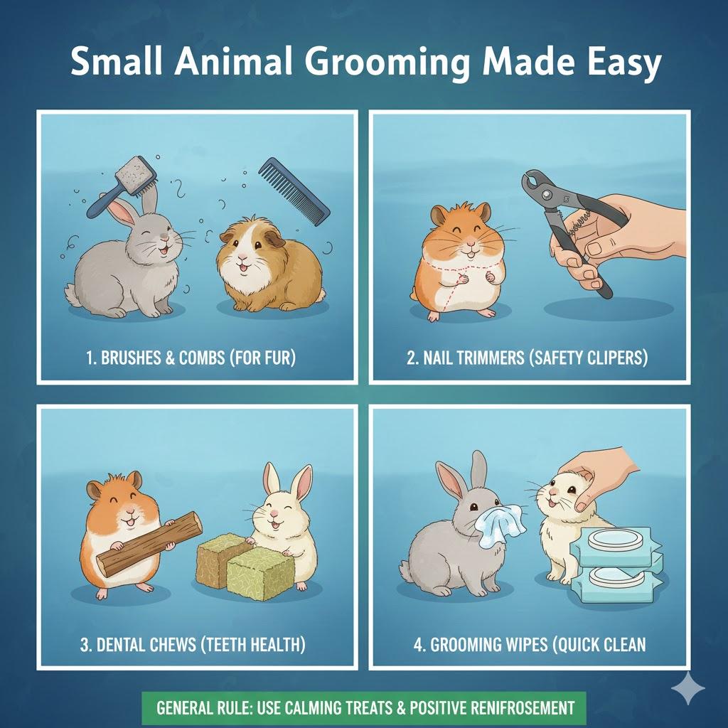 Each species has unique grooming requirements. Using the right small-animal grooming supplies ensures safe, stress-free care.