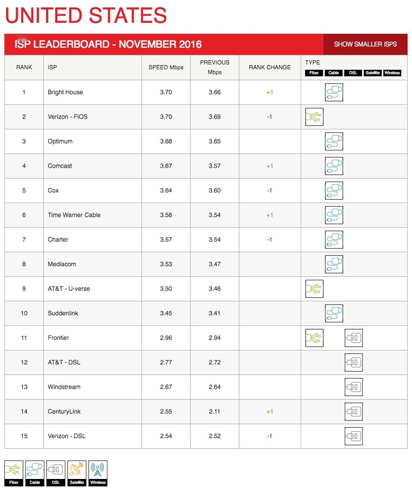 The Netflix ISP Speed Index reveals notable shifts for November 2016.
