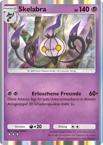 Skelabra, das Psycho-Pokémon aus der Erweiterung Traumhafte Parade, verfügt über 140 KP.