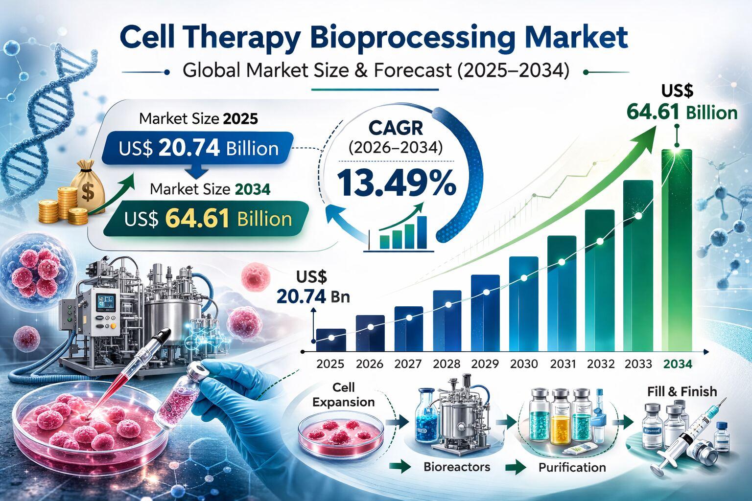 Global Cell Therapy Bioprocessing Market Trends 2026–2034 | 13.49% CAGR & Competitive Scenario