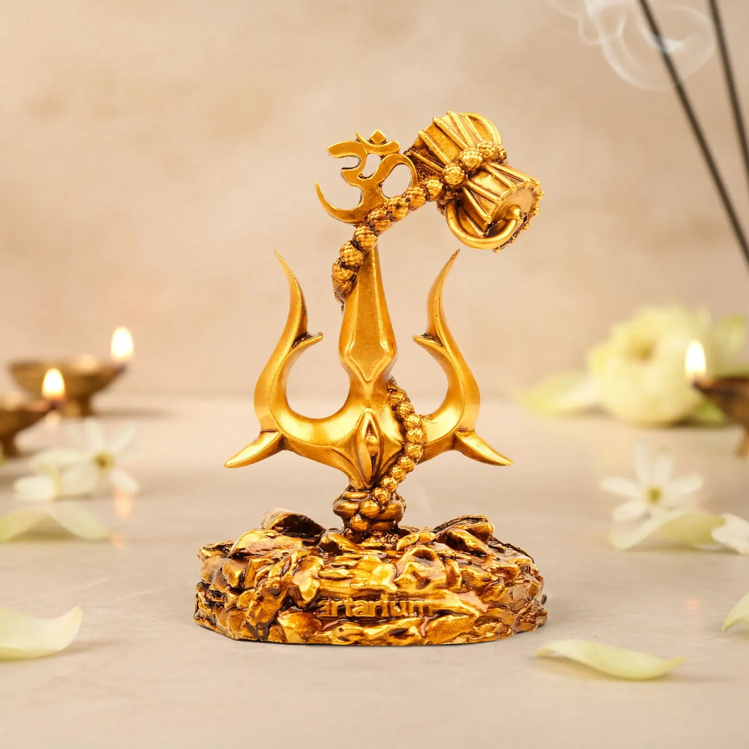 The Lord Shiva Trishul With Damru is crafted from high-grade resin, a material appreciated for its features: