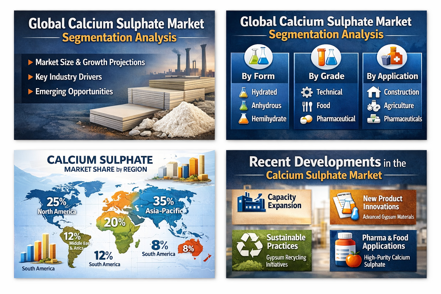 Technological advancements in gypsum processing and increasing investments in eco-friendly construction materials are likely to create new growth opportunities for market participants. As global industrialization continues to accelerate, calcium sulphate will remain an essential material for numerous applications.