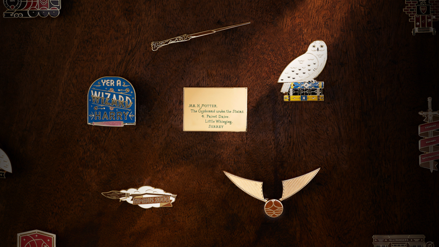*Priority purchasing access and a 20% discount require a Harry Potter Fan Club Gold membership subscription – purchase terms, restrictions, and additional conditions are applicable. This offer is exclusively valid for transactions made through the Harry Potter official online store. Pin availability and all merchandise items are limited to existing inventory levels.