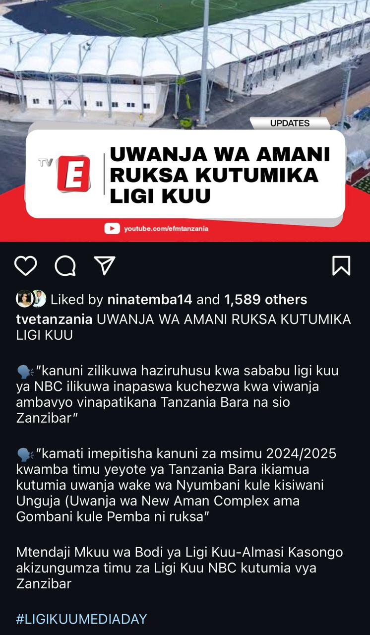 Kanuni mpya ya Ligi Kuu imeruhusiwa timu za Ligi Kuu Tanzania bara kutumia viwanja vya Unguja au Pemba ikiwa vitakidhi vigezo. “Tayari kuna timu moja imeshaomba kutumia uwanja wa New Amaan Complex na tumeshaipokea barua yao tutaitolea majibu siku za karibuni” Almas Kasongo,CEO