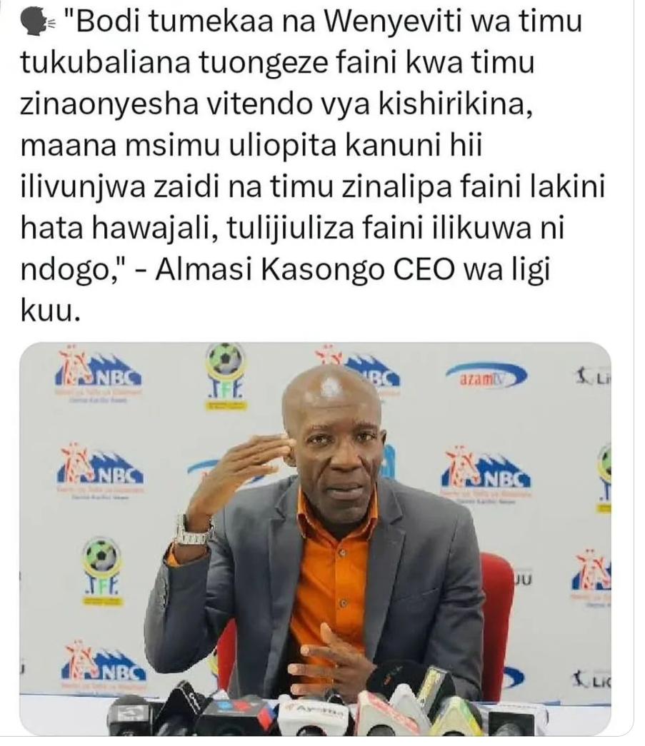 CEO wa Bodi ya Ligi ALMAS KASONGO amesema kuwa msimu ujao wa ligi kuu watatoa adhabu kwa maofisa wa habari ambao watakiuka kanuni kwa kushindwa kuzungumzia mpira na kuchekesha.