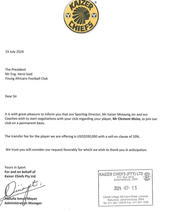 Moja ya Ofa ambazo Yanga imepata kuhusu mchezaji CLEMENT MZIZE